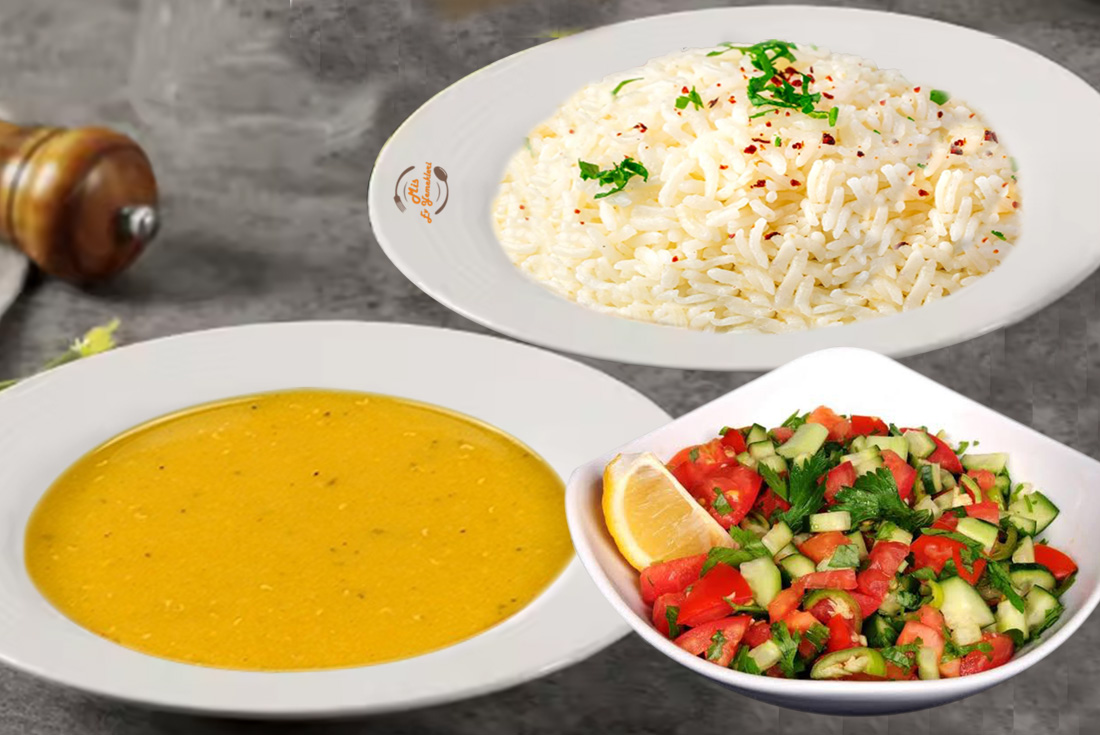 Mercimek Çorbası + Pirinç Pilavı + Çoban Salata